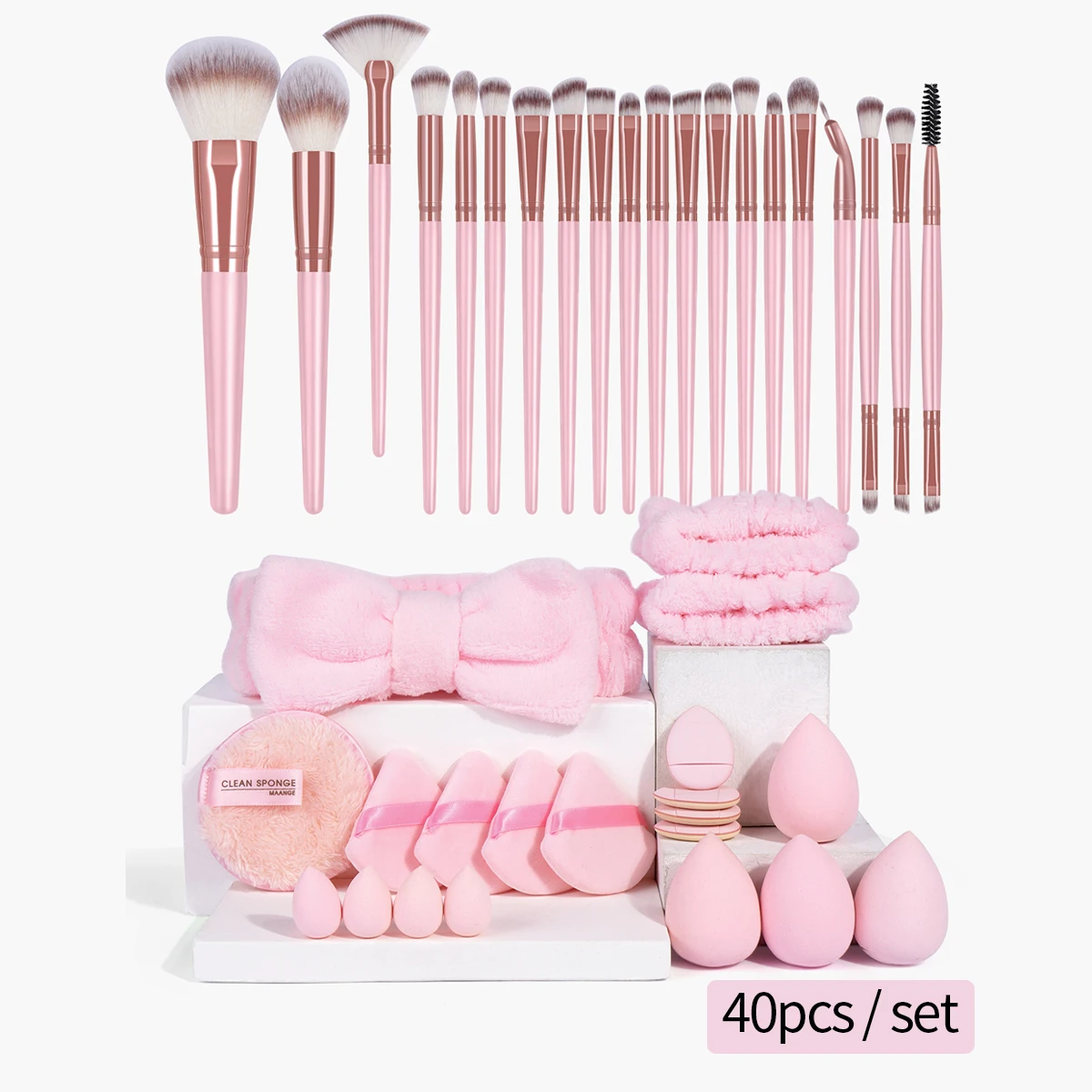 MAANGE 40pcs Professional Makeup Set 20 Makeup Brushes 17 Powder Puff Headband Foundation Eyeshadow Brush Travel Christmas Gift