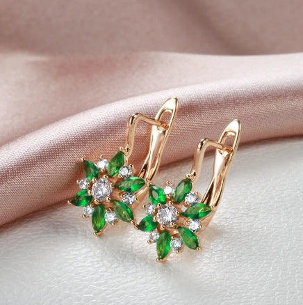 Flower Earring Ear Clip Green Zircon Ornament
